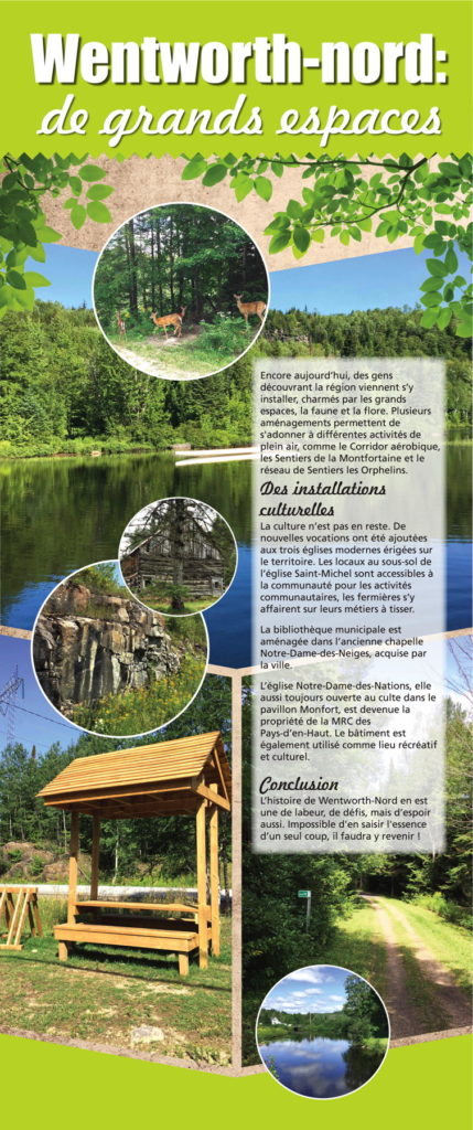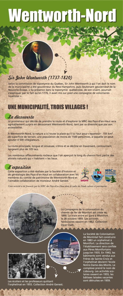 En 2017, avec le soutien de la MRC des Pays-d’en-Haut, de la Société d’histoire et de généalogie des Pays-d’en-Haut a produit, en collaboration avec le Comité Patrimoine de la TCACWN et le maire André Genest, six magnifiques bannières célébrant le patrimoine de Wentworth-Nord.